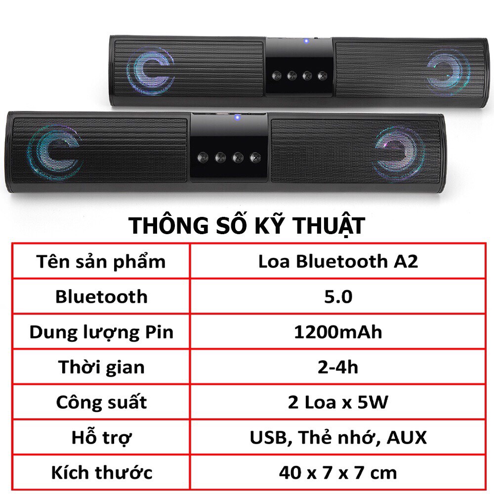 Loa Bluetooth A2 Kiểu Dáng Để Bàn Có 2 Loa Hỗ Trợ Bluetooth V5.0 - USB - Thẻ Nhớ TF Tích Hợp Pin.GIỚI THIỆU LOA BLUETOOTH A2.