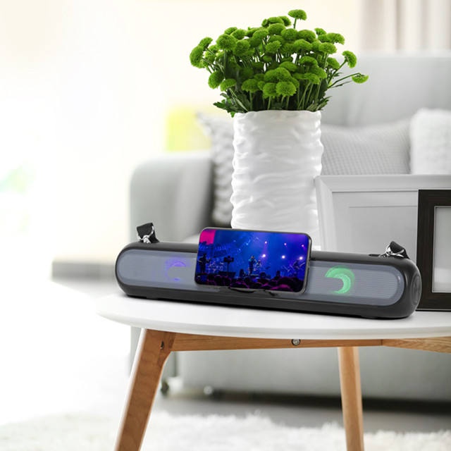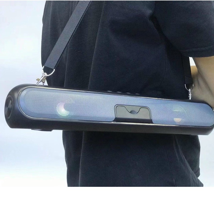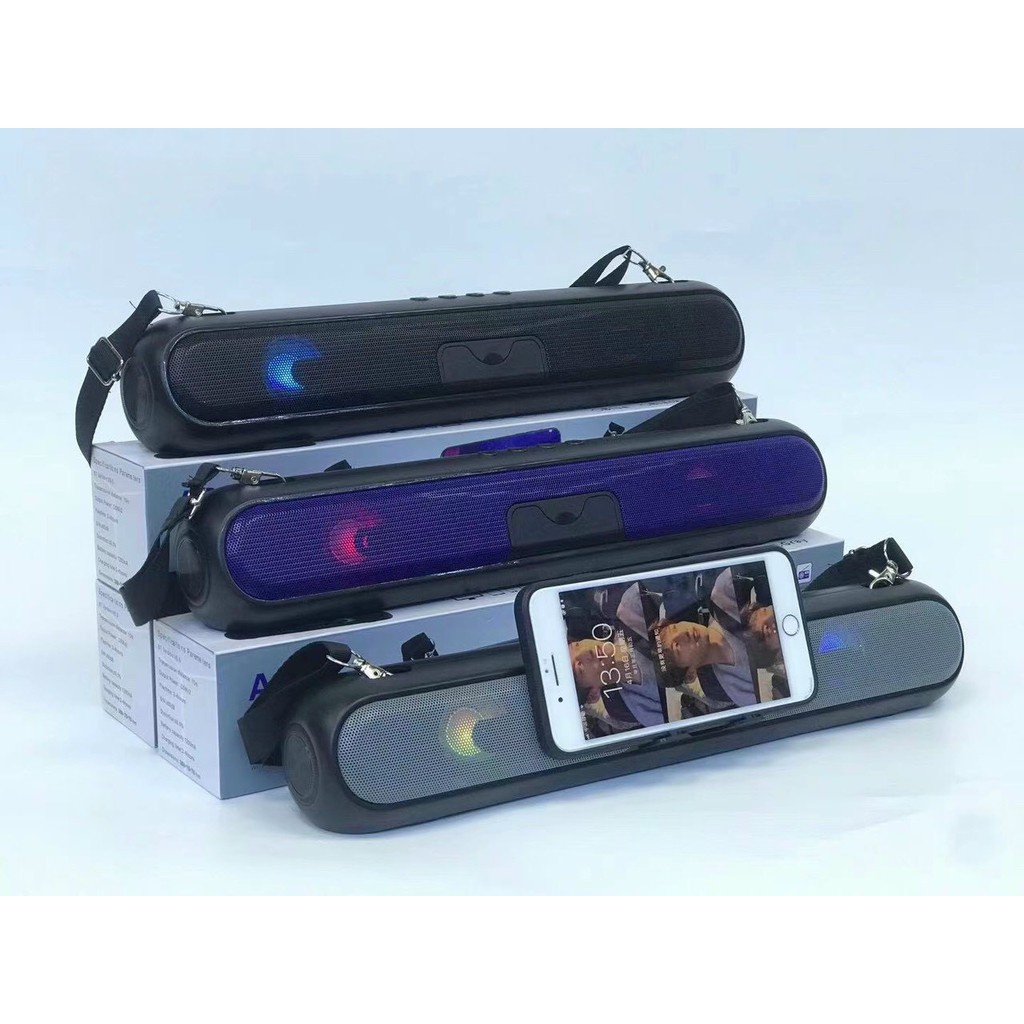 Loa bluetooth A28/A36 dáng dài âm thanh 3D,LED nháy theo nhạc, có giá đỡ điện thoại, dây đeo mang đi xa