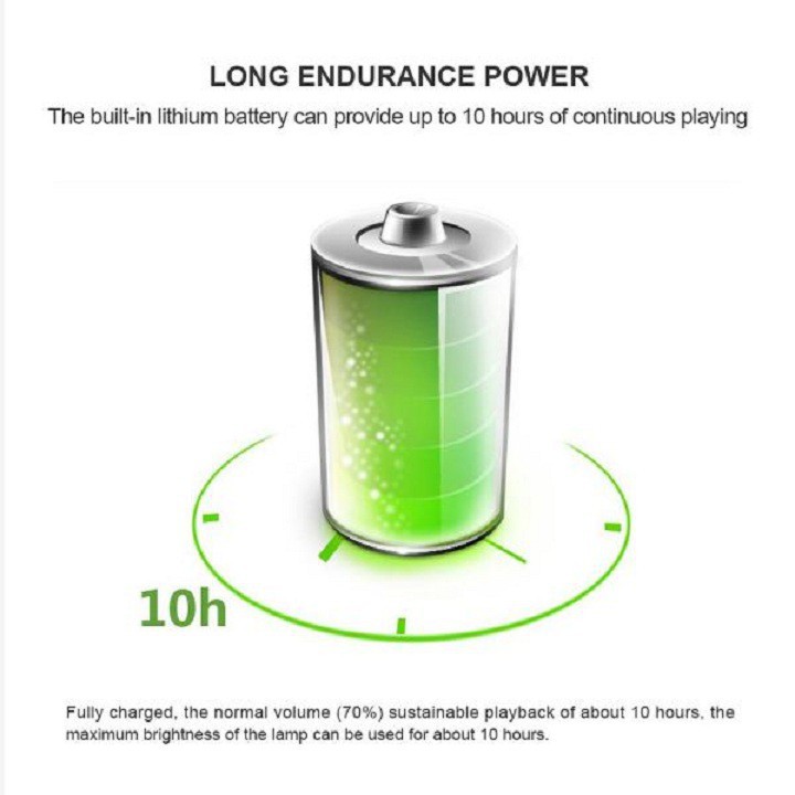 - Ánh sáng cũng hỗ trợ thẻ Micro SD, Đầu vào 3,5mm, đầu vào âm thanh. Sử dụng cáp được cung cấp cho thời gian phát lại âm thanh lâu hơn.