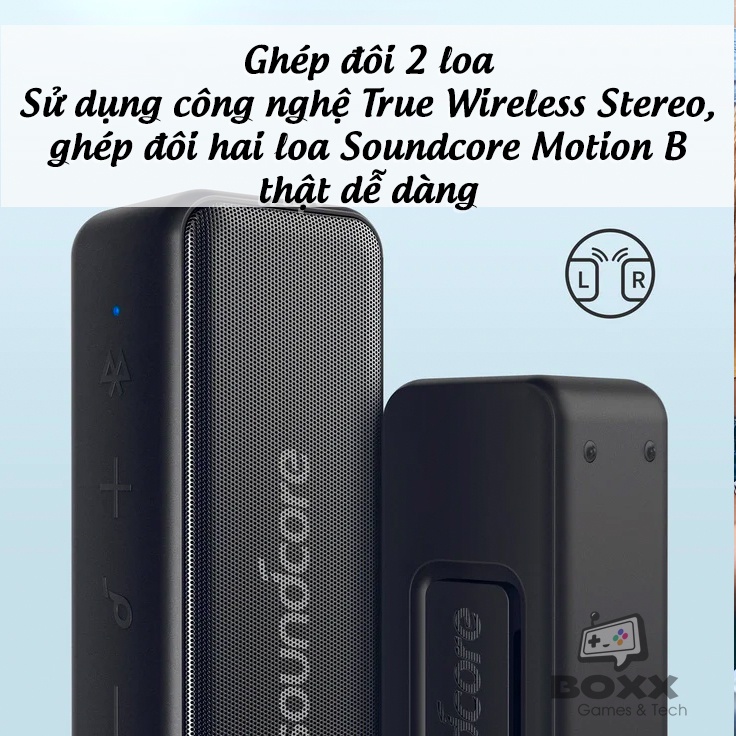 - Nâng công suất lên gấp đôi: Sử dụng công nghệ True Wireless Stereo, ghép đôi hai loa Soundcore Motion B thật dễ dàng. Cho bản thân nhiều âm lượng hơn và sự lan truyền lý tưởng của âm nhạc đến toàn bộ căn phòng!