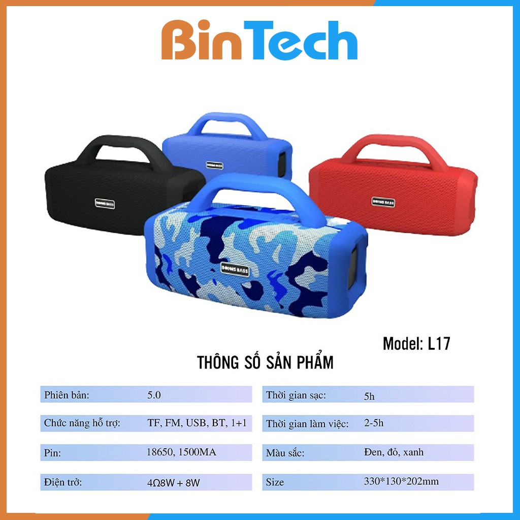 Thiết Bị Âm Thanh > Dàn âm thanh > Loa || Loa bluetooth Booms Bass L17 nghe nhạc hay âm thanh chất lượng hỗ trợ cắm thẻ nhớ - BINTECHCòn hàng