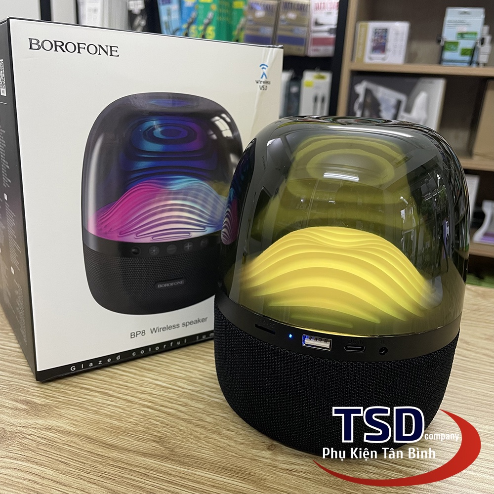 - Borofone BP8 là một trong những sản phẩm loa Bluetooth mới của thương hiệu Borofone. Dù có mức giá khá rẻ nhưng lại sở hữu âm thanh chất lượng với công suất lên đến 10W, đi kèm thời lượng pin lâu dài. Ngoài tính di động, thiết kế thân loa với khả năng phát sáng cũng chính là điểm đáng chú ý, “thu hút” các bạn trẻ năng động.