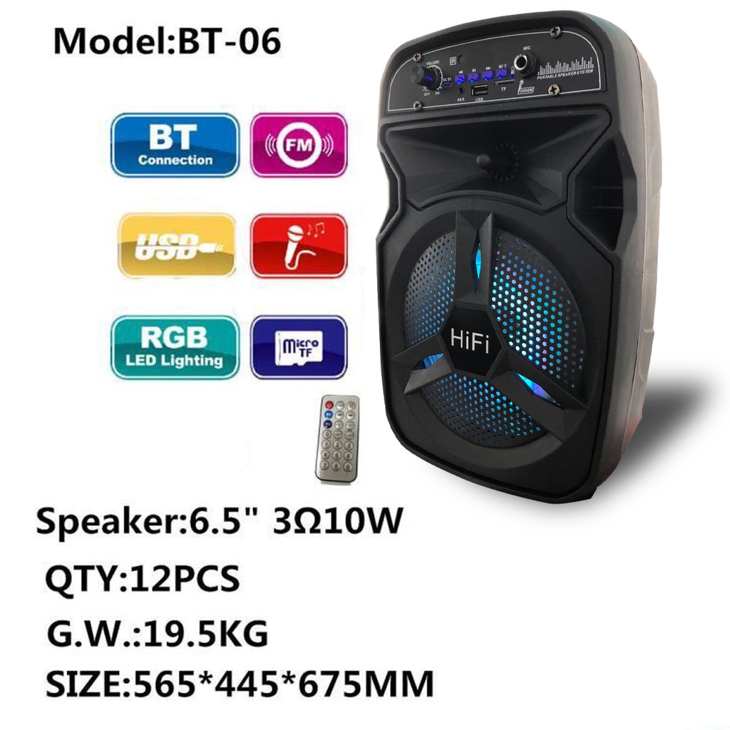 Loa bluetooth BT-06 tặng kèm Micro hỗ trợ chức năng FM kết nối thẻ nhớ TF cổng USB dây AUX Karaoke Remote điều khiển