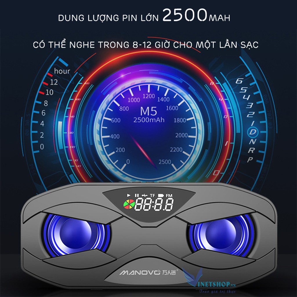 Thông Số Kỹ Thuật Loa Bluetooth Không Dây Manovo M5 Cao Cấp Phiên Bản Đặc Biệt, Thiết Kế LED Nháy Theo Nhạc