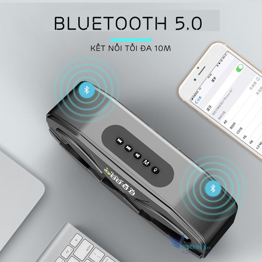 Loa Bluetooth cầm tay Manovo M5/Manovo M4 âm thanh siêu trầm tích hợp loa kép✔màn hình led ✔FM radio dung lượng pin 2500