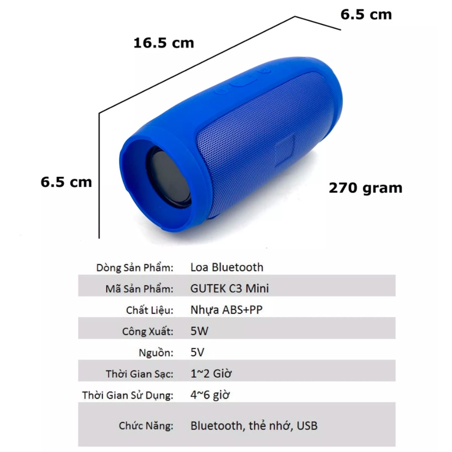 – Tên sản phẩm: Loa bluetooth charge 3 mini