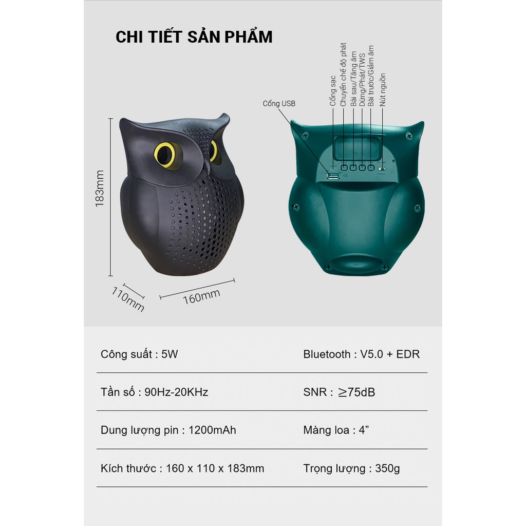 Công suất : 5W x 1 loa = 5W