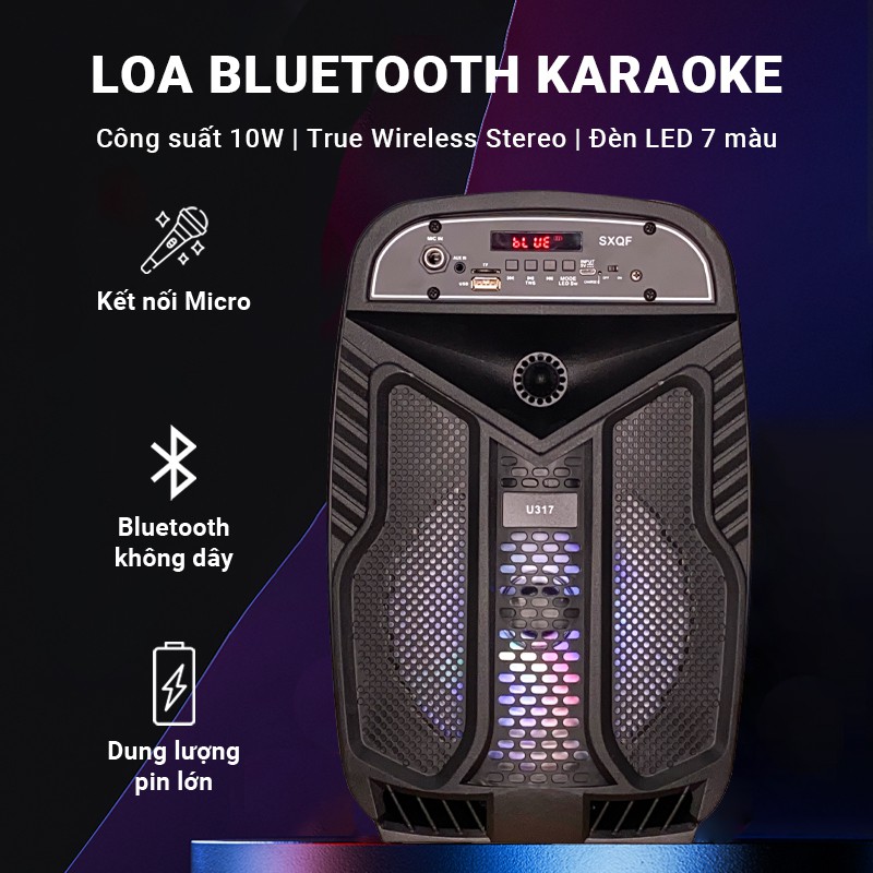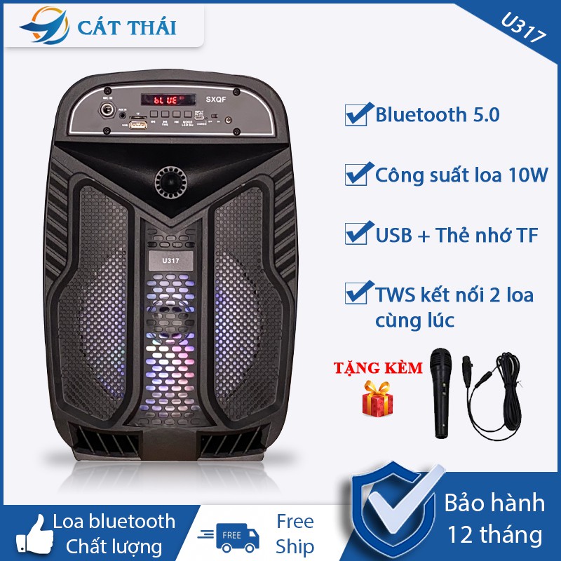 Loa bluetooth Cát Thái U317 âm thanh HIFI, tặng kèm micro karaoke, công nghệ TWS kết nối 2 loa cùng lúc, đèn LED 7 màu