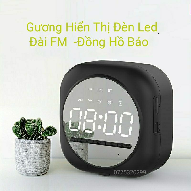 Loa Bluetooth Đài FM Tích Hợp Đồng Hồ Báo Đài FM Màn Hình Tráng Gương hót 2020