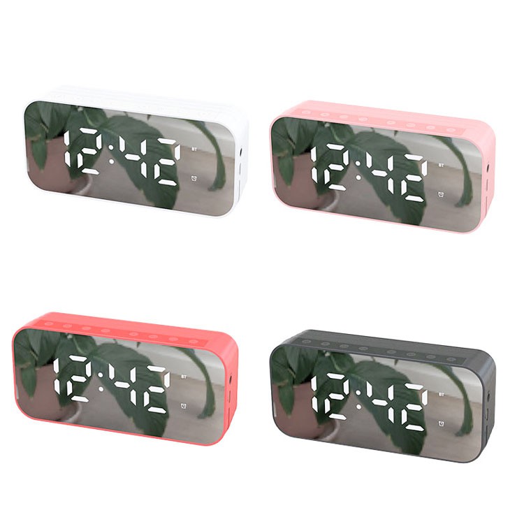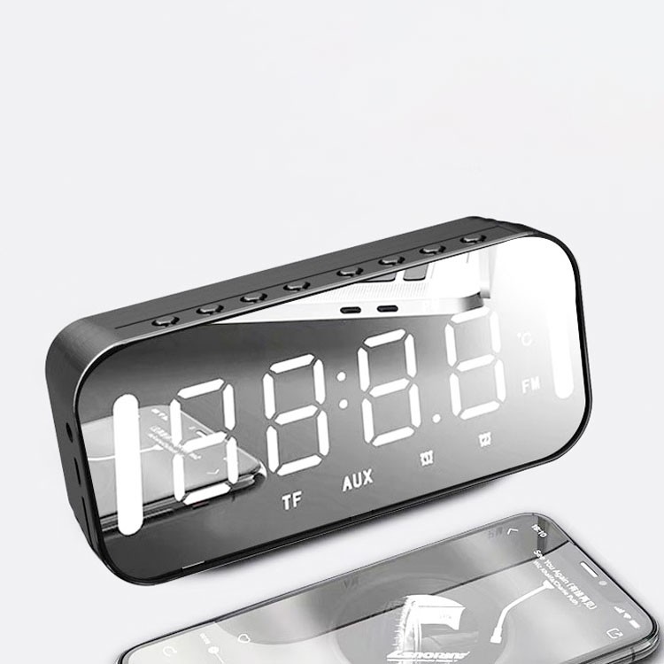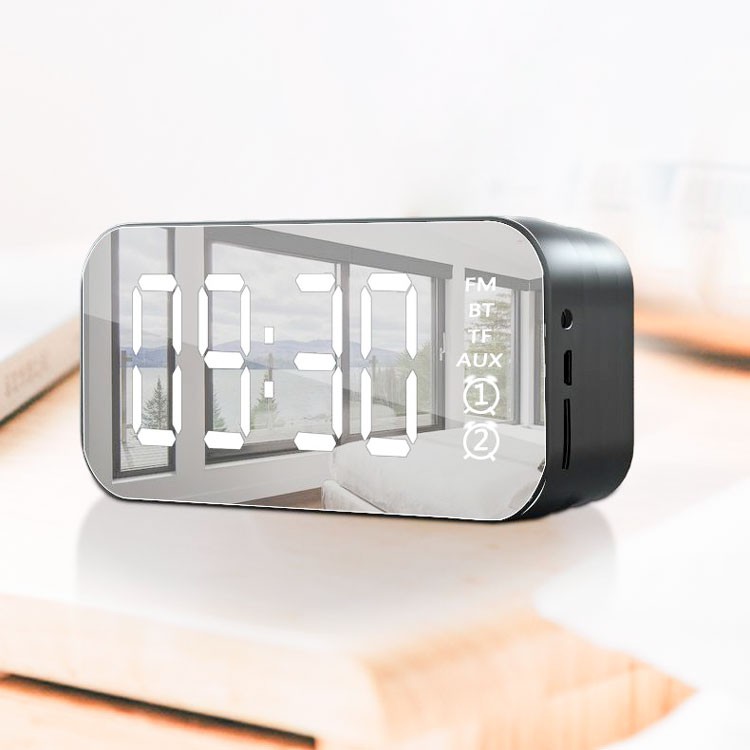 Loa Bluetooth Di Động Có Mặt Gương Tích Hợp Đồng Hồ Báo Thức, Có Khe Cắm Thẻ Nhớ