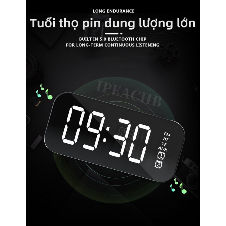 Loa bluetooth đồng hồ báo thức màn hình gương hiển thị đèn led cao cấp - hỗ trợ thẻ nhớ & nghe FM