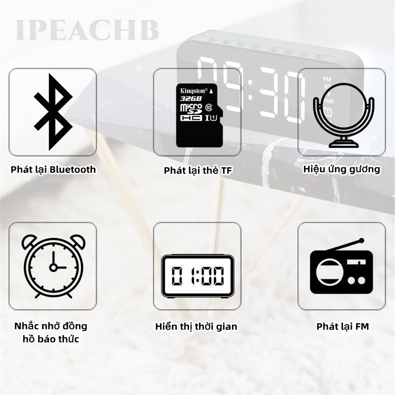 Giới thiệu Loa bluetooth đồng hồ báo thức màn hình gương hiển thị đèn led cao cấp - hỗ trợ thẻ nhớ & nghe FM