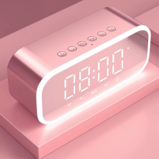 Loa bluetooth đồng hồ báo thức mặt tráng gương sang trọng
