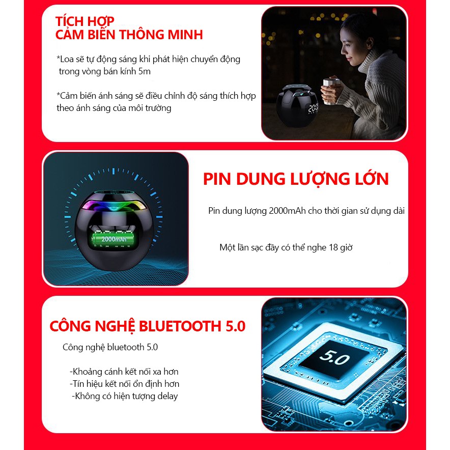 +Dung lượng pin loa bluetooth đồng hồ G90 S cực cao lên tới 2000mAh