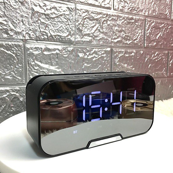 - Không đơn thuần là thiết bị dùng để nghe nhạc được thiết kế nhỏ gọn, dòng sản phẩm loa blutooth này còn được tích hợp thêm nhiều tính năng vô cùng thuận lợi như đồng hồ báo thức, nhiệt độ theo độ C. Cùng với đó, bạn cũng có thể dùng loa để làm gương soi khi cần thiết.