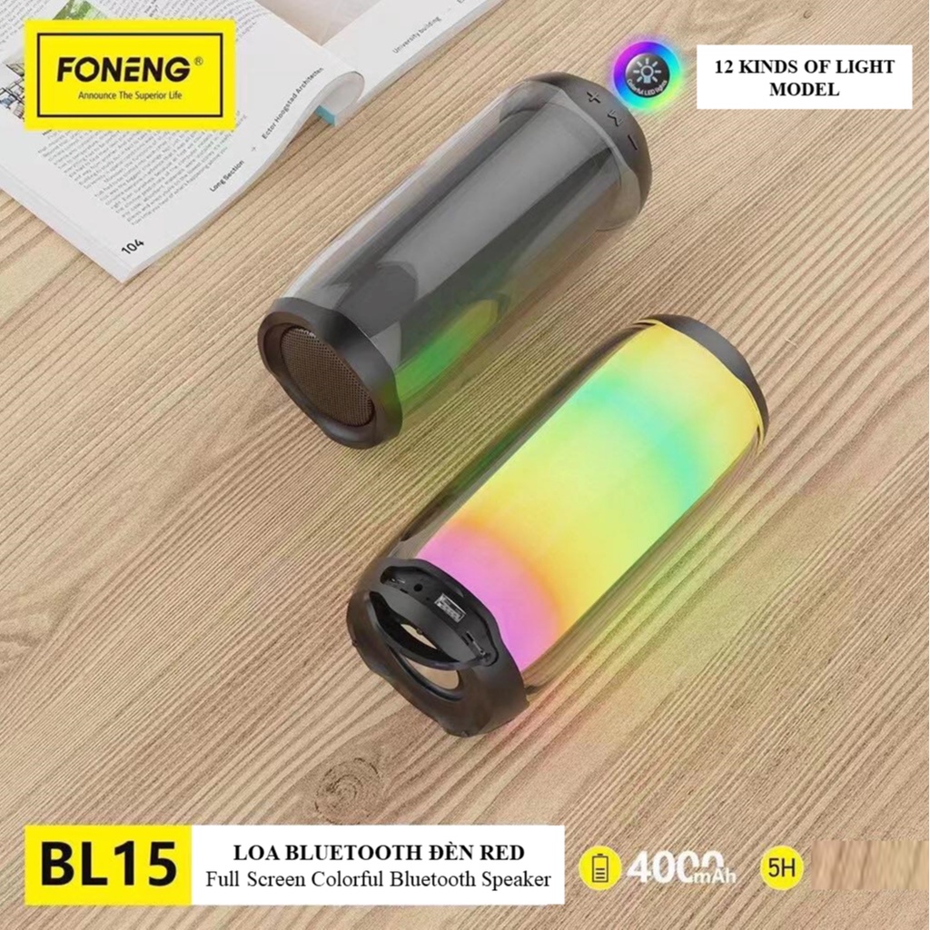 - Loa Foneng BL15 được trang bị đến 12 kiểu đèn cho màu sắc bắt mắt, chuyển động linh hoạt và mượt mà giữa các màu sắc, thiết kế lớp kính trên loa giúp màu sắc đèn không bị chói mắt.