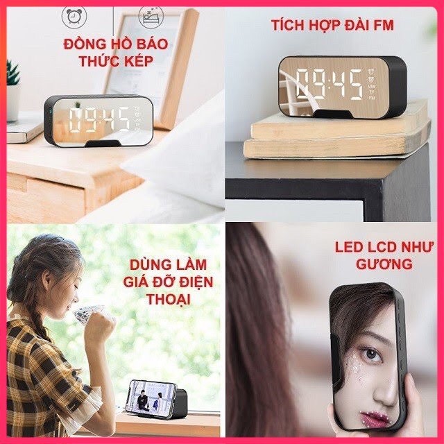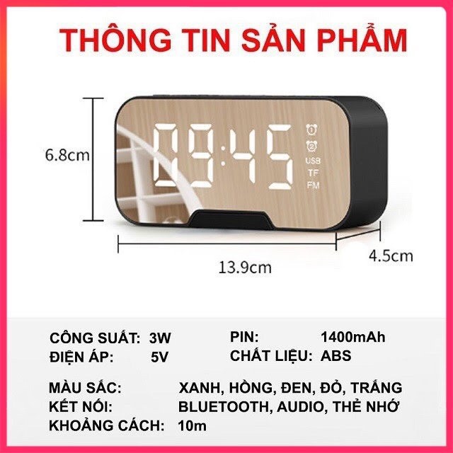 + Âm thanh từ loa to rõ, chắc âm, bass lớn. Khi sở hữu sản phẩm này vừa có một chiếc loa nhỏ gọn, một chiếc đồng hồ hiển thị thời gian, nhiệt độ và cả một chiếc gương để trang điểm.