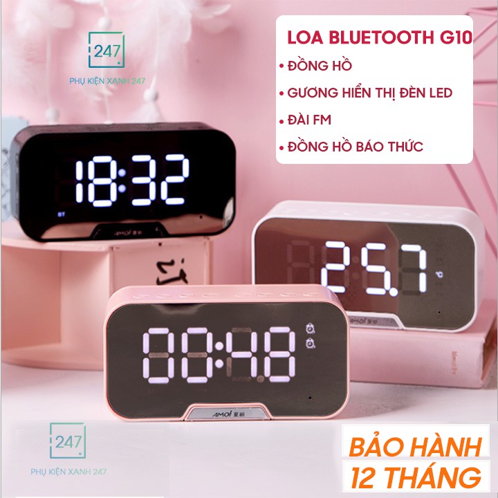 Loa Bluetooth G10 Tích Hợp Đồng Hồ, Màn Hình Tráng Gương,Nghe Đài FM - 𝐁𝐀̉𝐎 𝐇𝐀̀𝐍𝐇 𝟏𝟐 𝐓𝐇𝐀́𝐍𝐆