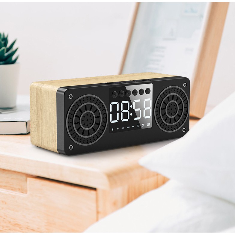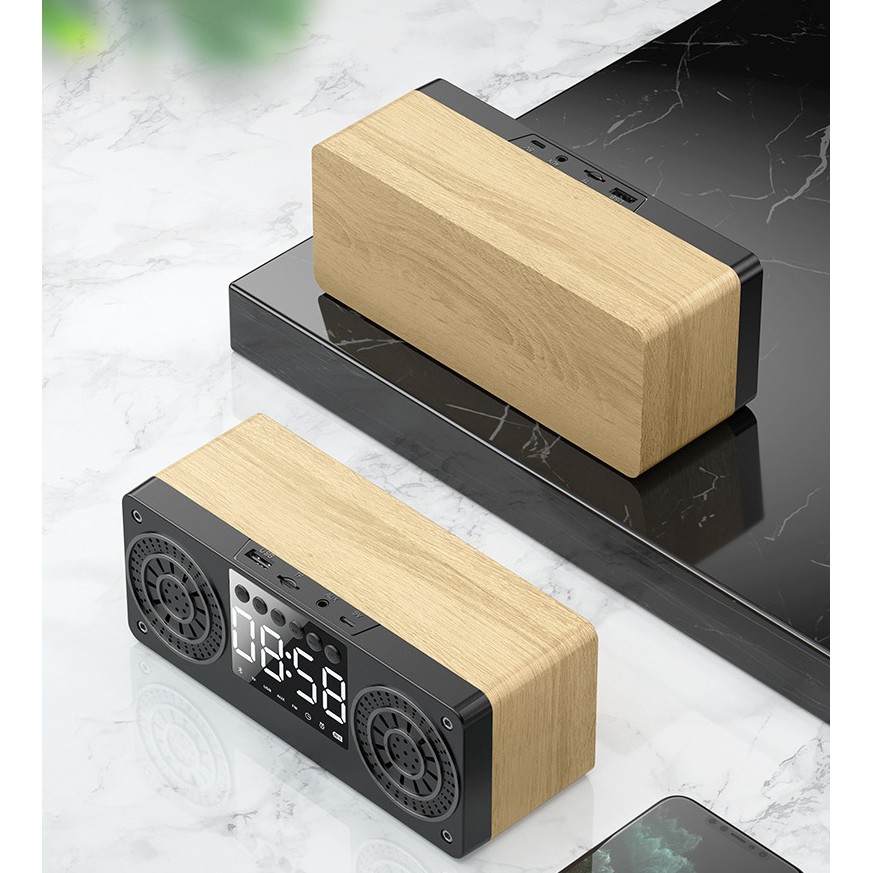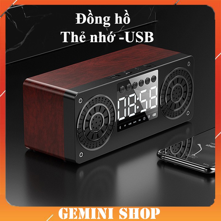 Loa Bluetooth gỗ 5.0 không dây A10 tích hợp đồng hồ báo thức , màn hình LED, hỗ trợ thẻ nhớ, USB GEMINI SHOP