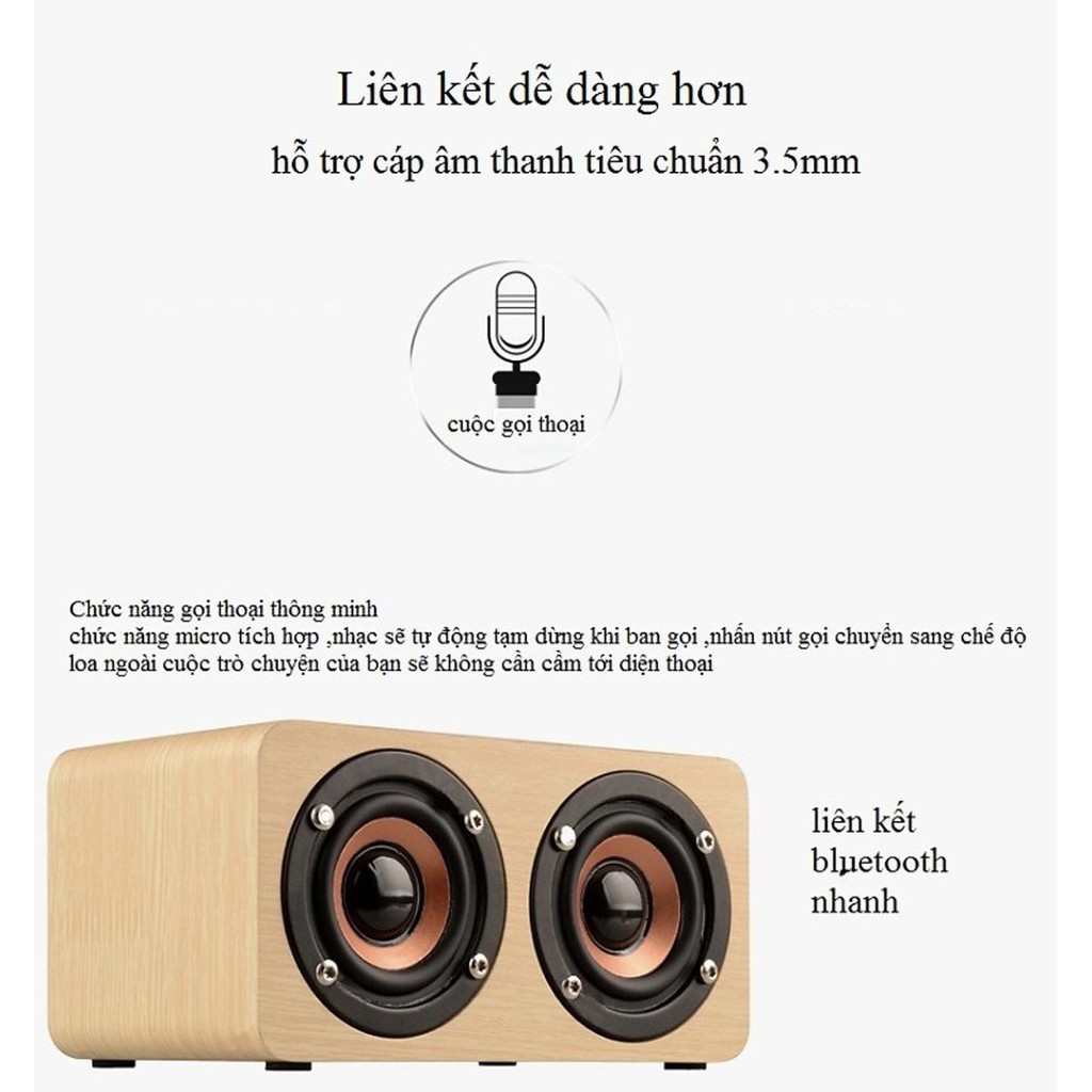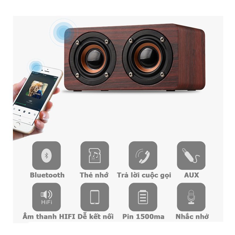 Loa Bluetooth Gỗ Cao Cấp Super Bass PC/Điện Thoại - Âm thanh nổi HIFI Stereo speaker W5
