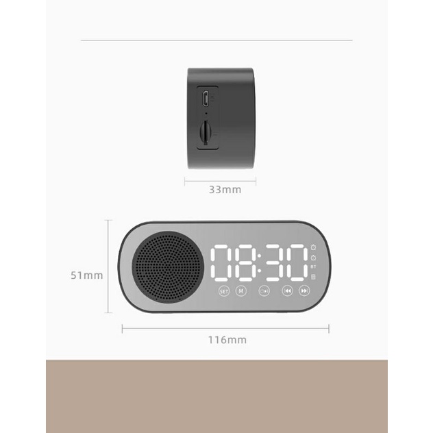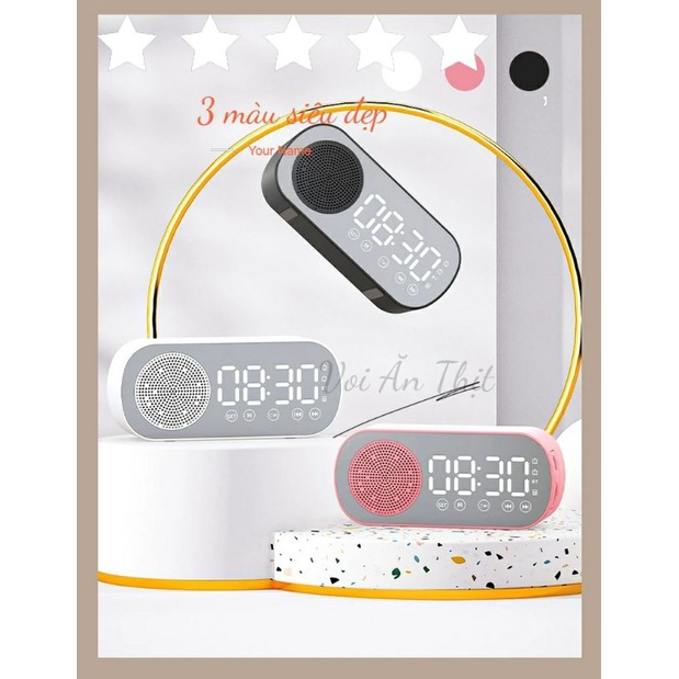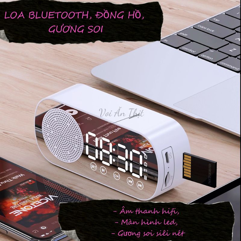 LOA BLUETOOTH HỖ TRỢ THẺ NHỚ KIÊM ĐỒNG HỒ BÁO THỨC ĐỂ BÀN HIỂN THỊ ĐÈN LED KIÊM GƯƠNG SOI CÓ THỂ DÙNG TRANG TRÍ DECOR