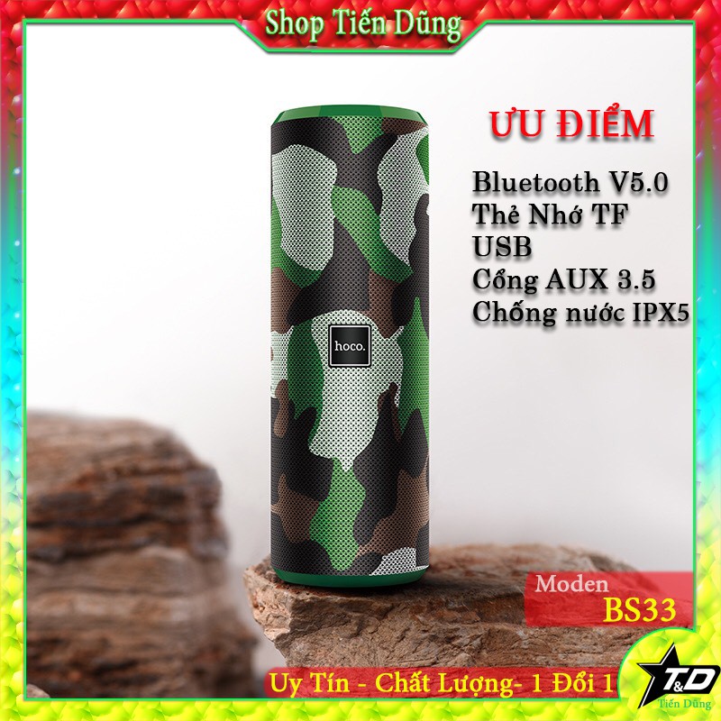 Loa bluetooth hoco bs33 chống nước IPX5 chạy thẻ nhớ USB bluetooth V5.0 hỗ trợ cổng AUX