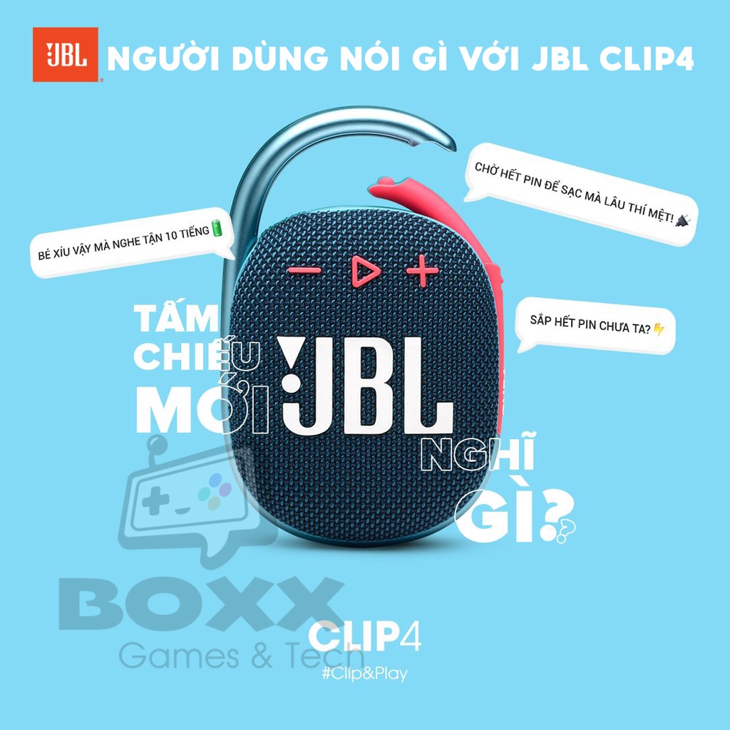 Sản phẩm mới ra mắt đến từ JBL Boxx xin phép được giới thiệu tới quý khách hàng.Với những đặc điểm mời kế thừa thành công từ dòng loa JBL Clip 3 và được cải tiến đáng kể :
