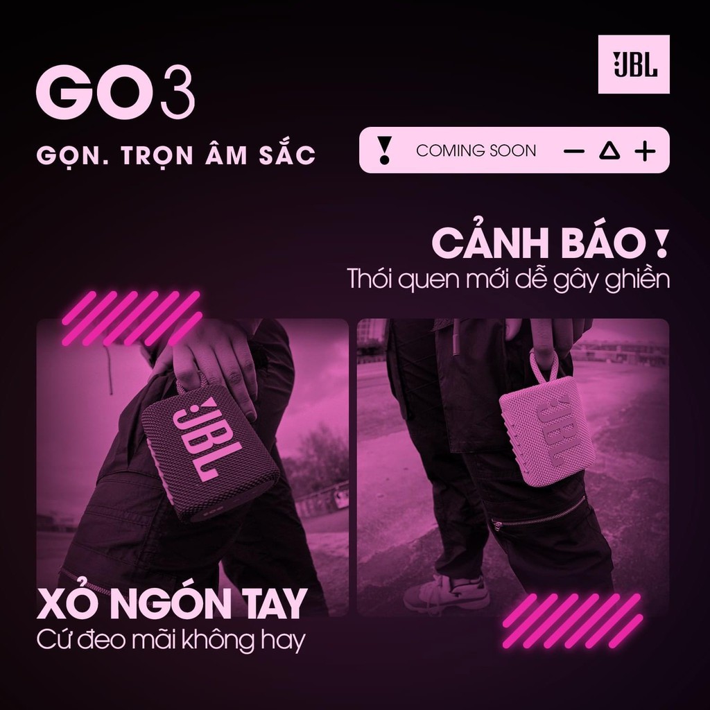 - Năm nay JBL đã mang đến những sự đột phá về thiết kế nhỏ gọn tiện lợi trên loa Bluetooth JBL GO 3 nhưng chất lượng âm thanh phát ra cũng không kém với bộ loa thế hệ mới đi kèm màn loa siêu mỏng.