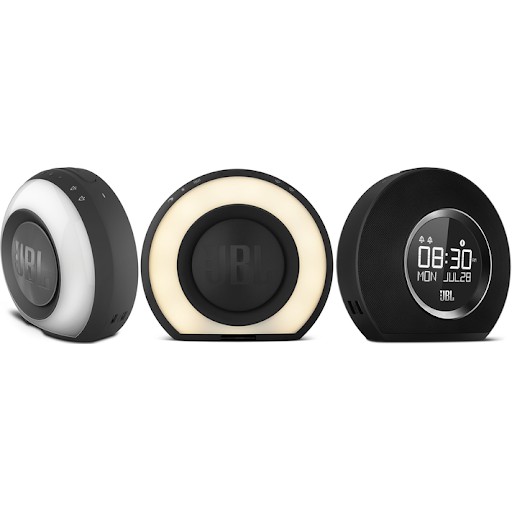 Loa Bluetooth JBL Horizon có thiết kế nhỏ gọn và hiện đại nhưng cũng không kém phần tinh tế với hình tròn khuyết phía dưới giúp loa đứng vững vàng trên bề mặt. Màn hình LCD phía trong vừa có tính năng giúp bạn theo dõi thời gian, giờ báo thức, vừa là điểm nhấn độc đáo cho sản phẩm.