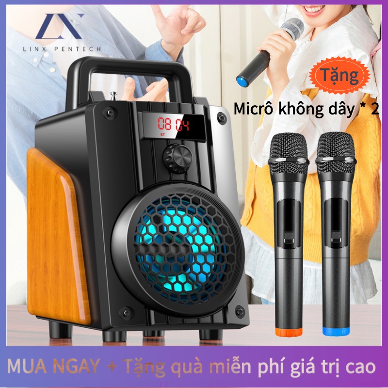 Loa Bluetooth Karaoke Không Dây (Micro Không Dây * 2) Hát Công Suất Lớn 20W + Điều Khiển Từ Xa / Đầu Đọc Thẻ / Loa Gỗ