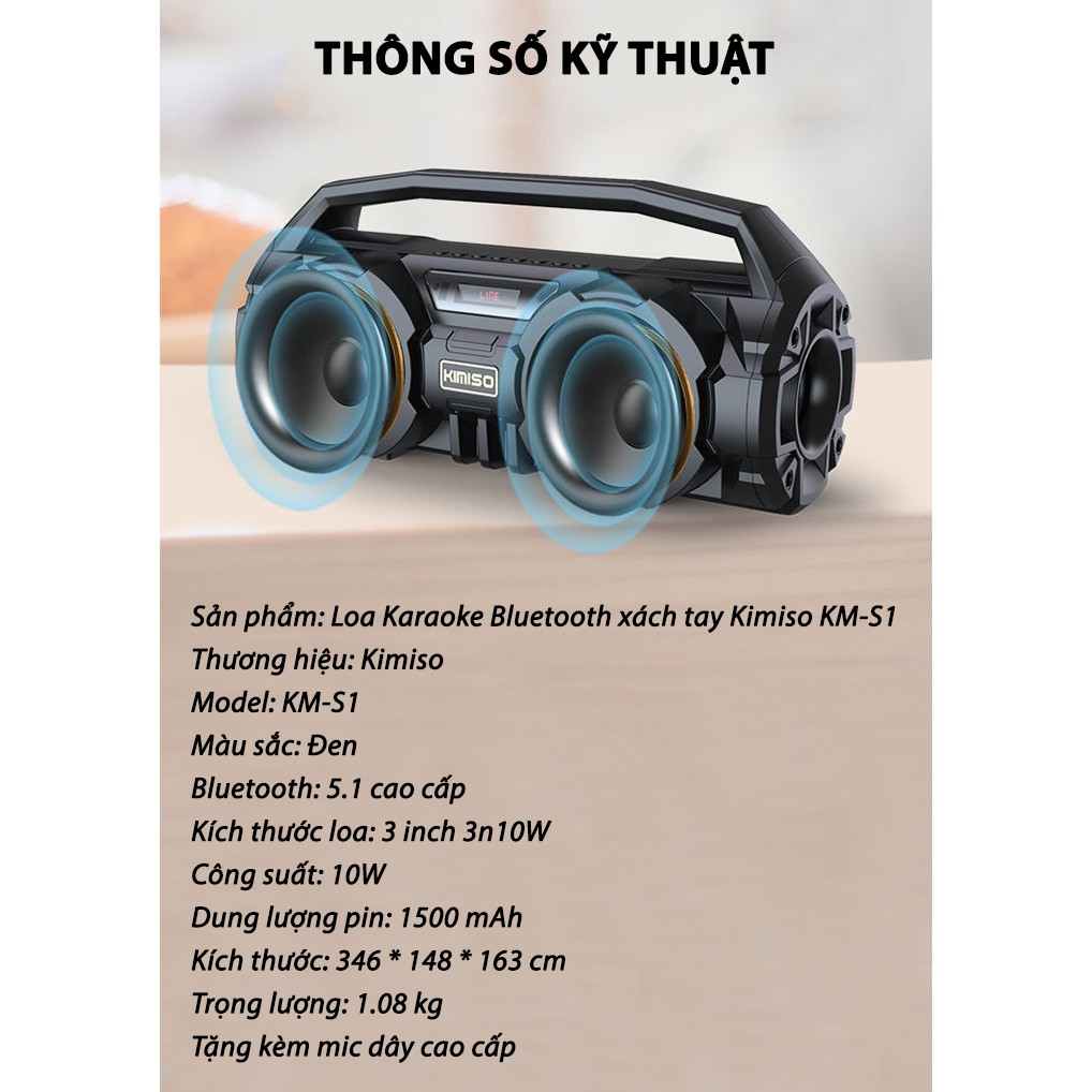 LOA BLUETOOTH KÈM MIC KIMISO KM-S1THÔNG TIN SẢN PHẨM