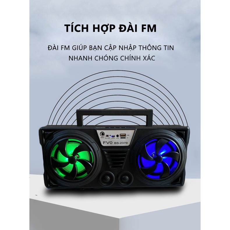 Loa bluetooth karaoke Bs 237 có hệ thống loa kép kết họp màng chắn âm bass mang lại âm thanh trầm bổng tuyệt hảo