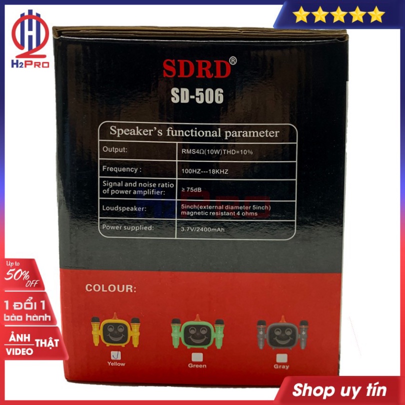 Giới thiệu Loa bluetooth karaoke SDRD SD-506 H2Pro CUTE đa năng 10W-USB-TF-AUX-FM-2 micro, (tặng 2 micro và 2 đôi pin 250K)