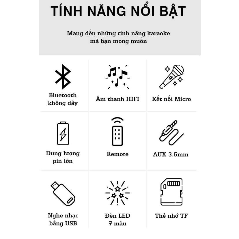 - Bộ sản phẩm gồm: 1 loa, 1 cáp sạc , 1 micro