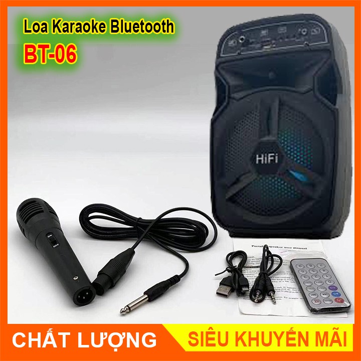 Loa Bluetooth Không Dây BT-06 Xách Tay Loại 1 Âm Thanh Hay Siêu Trầm, Led Nháy Theo Nhạc, Super Bass Nghe EDM, REMIX