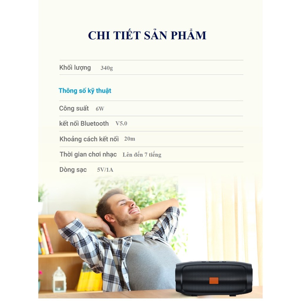 - Loa Bluetooth Không Dây Charge 3 Mini nổi tiếng với âm bass mạnh mẽ, tạo không gian rung đập, dồn dập. Chiến mọi thể loại nhạc từ EDM, DJ, Nonstop, Remix đến những bài nhạc Pop sâu lắng, nhẹ nhàng đầy cảm xúc hay những ca khúc cải lương, nhạc Bolero, nhạc cách mạng, kinh phật... đều tốt cả nhé. Âm thanh hay vượt trội, diễn tả mọi cung bậc cảm xúc của bản nhạc mà bạn yêu thích thật sự tuyệt vời.