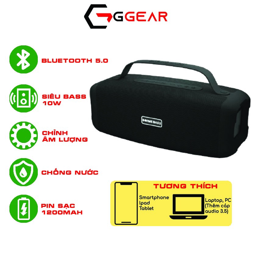 Loa bluetooth không dây GGear loa blutooth toàn dải siêu bass pin khủng chống nước thẻ nhớ, USB, audio 3.5mm tính GL17