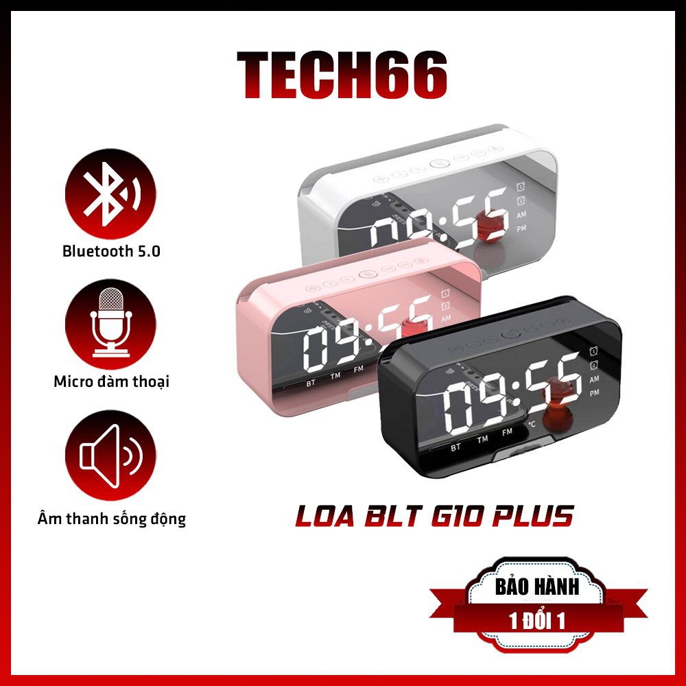 Loa bluetooth không dây kiêm đồng hồ báo thức G10 Plus màn hình tráng gương tích hợp đài fm cổng thẻ nhớ và usb
