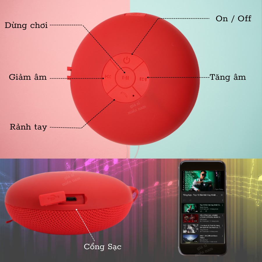 👉 Bật nút on phía trên thân máy, và bật bluetooth của điện thoại và tìm thiết bị bấm vào kết nối là sử dụng thôi. Kết nối Bluetooth của loa không kén thiết bị. Có thể kết nối với điện thoại Samsung, Iphone, và máy vi tính.