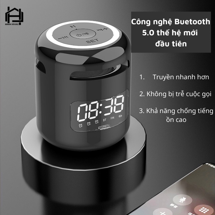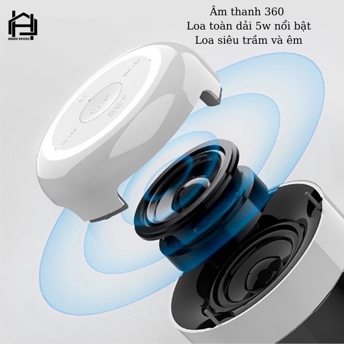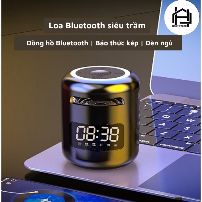Loa bluetooth kiêm đồng hồ, báo thức, nghe đài FM, làm đèn ngủ -Loa mini cao cấp âm thanh siêu trầm ấm thiết kế nhỏ gọn