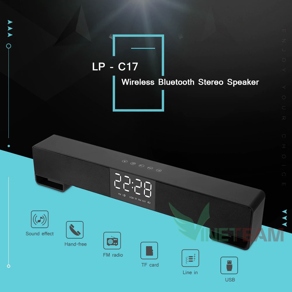 Loa bluetooth kiêm đồng hồ báo thức có led hiển thị Lp C17 công suất 10w DC3201