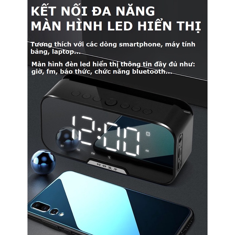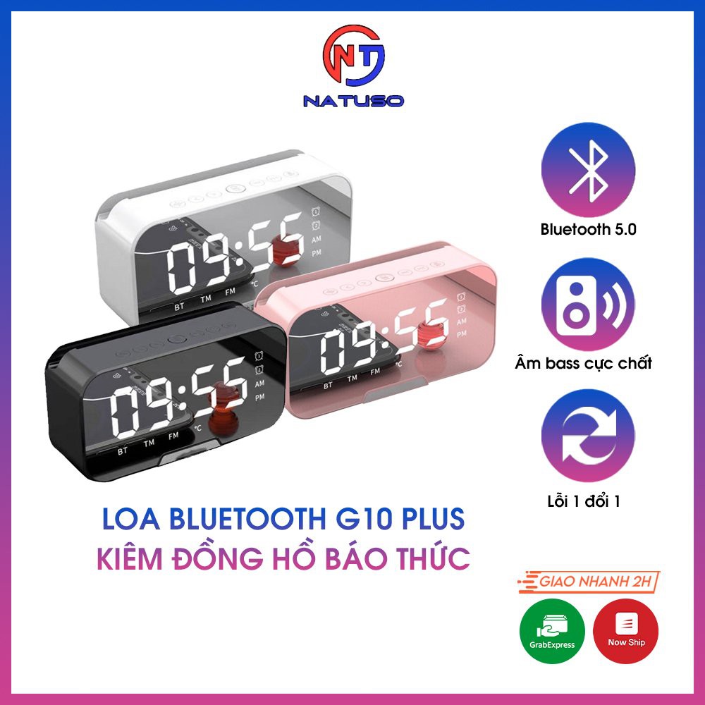 Loa bluetooth kiêm đồng hồ báo thức G10 Plus màn hình tráng gương hiển thị đèn led nghe đài fm radio