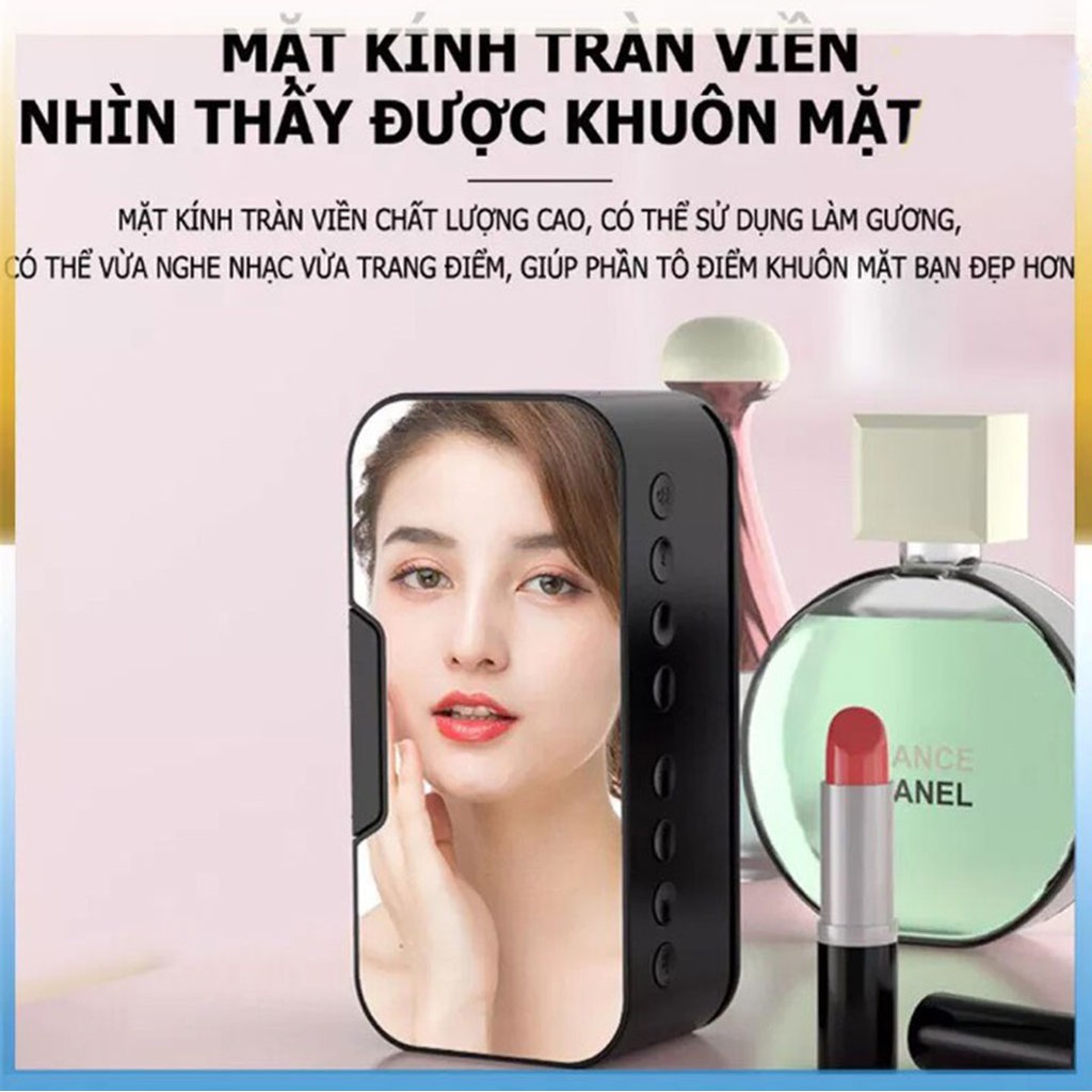 - Loa bluetooth mặt gương K10 có công suất 3W được kết hợp thêm 1 cục bass phía sau cho âm bass mạnh mẽ