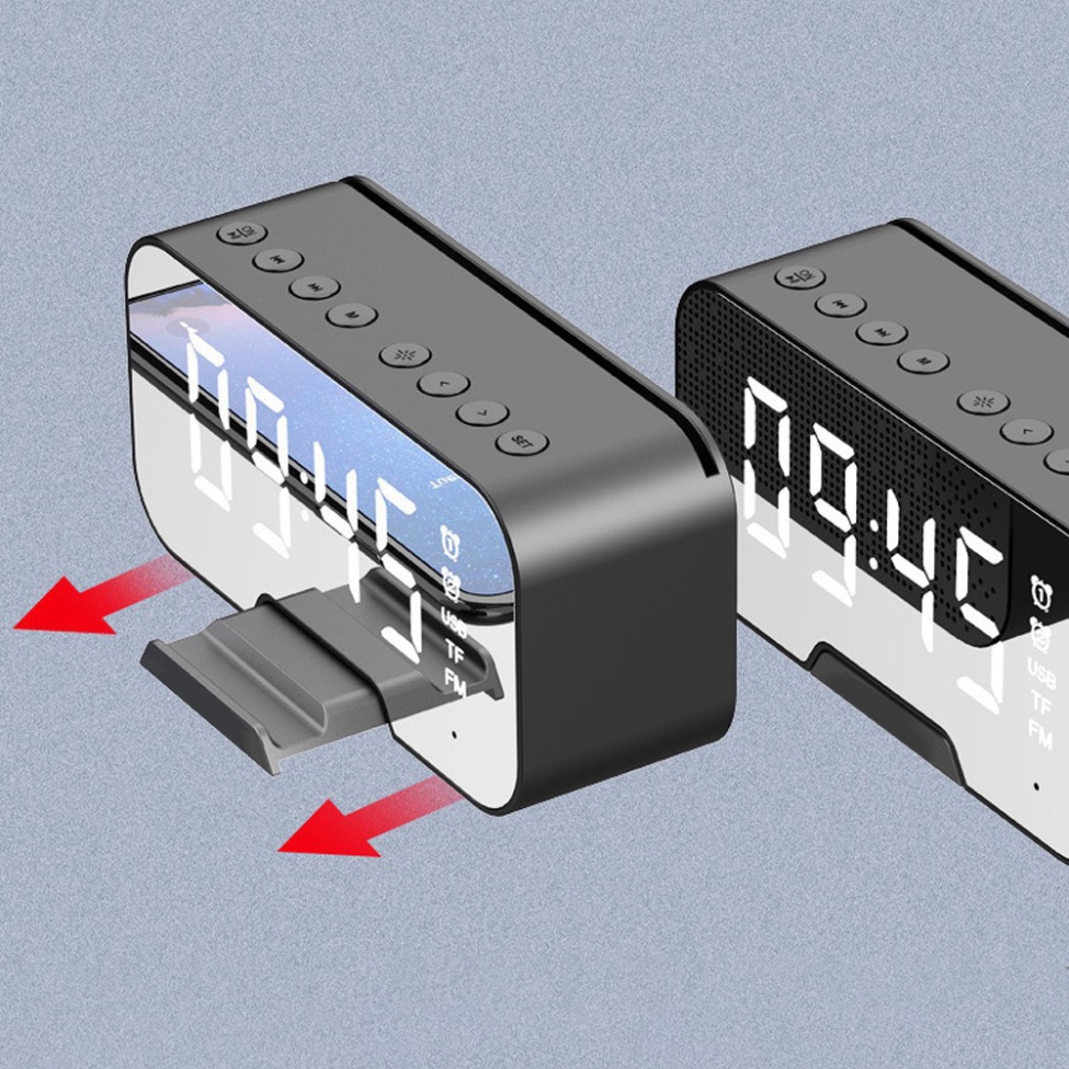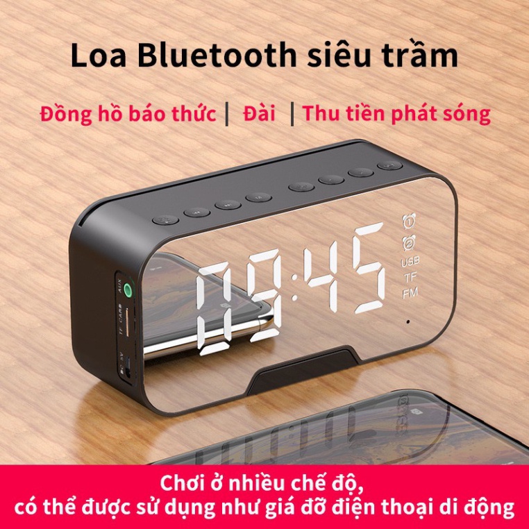Loa Bluetooth Kiêm Đồng Hồ G10 Mặt Gương Hiển Thị Đèn Led - Đài FM - Đồng Hồ Báo Thức