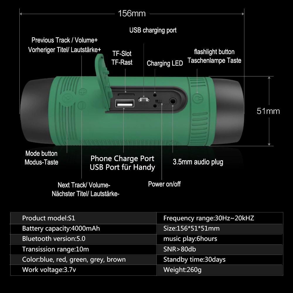 Giới thiệu Loa Bluetooth Kiêm Sạc Dự Phòng Và Đèn Chiếu Sáng Zealot S1 - Hàng Chính Hãng