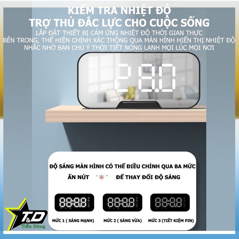 - Âm thanh từ loa to rõ, chắc âm, bass lớn. Khi sở hữu sản phẩm này vừa có một chiếc loa nhỏ gọn, một chiếc đồng hồ hiển thị thời gian, nhiệt độ và cả một chiếc gương để trang điểm. Đây là món đồ không thể thiếu cho các tín đồ âm nhạc thời đại 4.0.