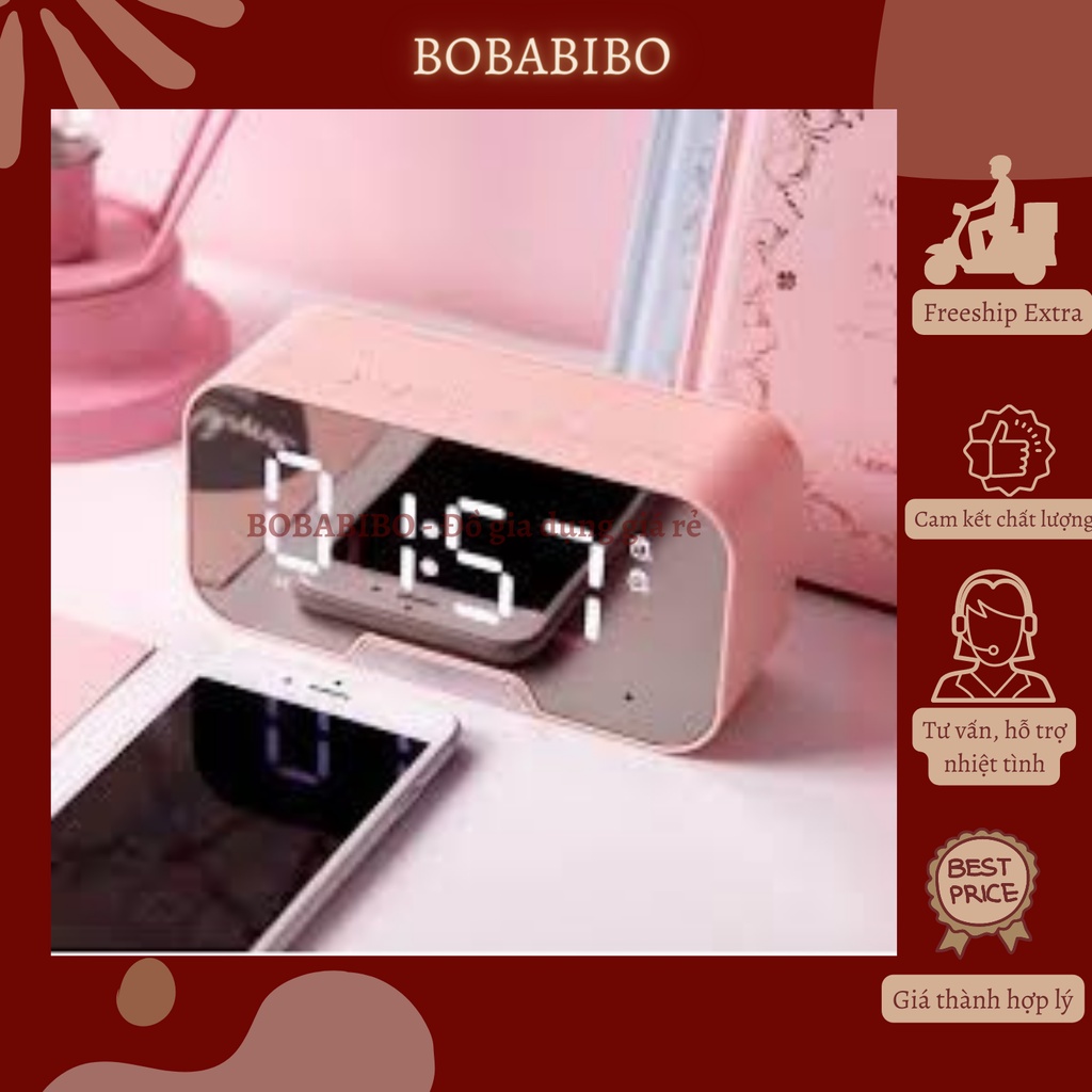 Loa Bluetooth Kimiso K10 Plus Cao Cấp Kèm Đồng Hồ Báo Thức, Loa Bluetooth Mini Màn Hình Tráng Gương Đồng Hồ Led Bobabibo