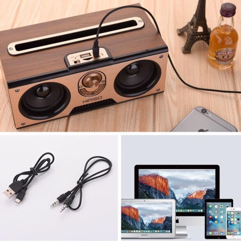 Loa Bluetooth 20W KIMISO KM-7 Hỗ Trợ FM/AUX/USB/TF/MIC Vân Gỗ Cực Đẹp - Bảo Hành 12 Tháng