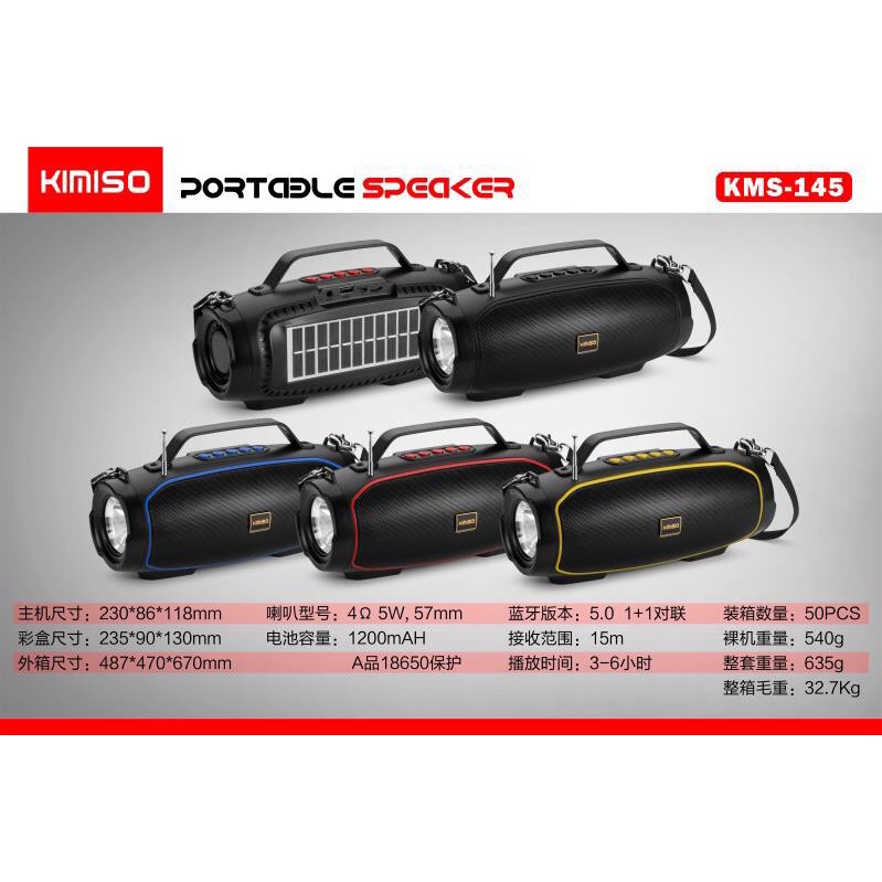 Loa Bluetooth Kimiso KMS-145 Âm Thanh Cực Chuẩn, CNS.365 Có Ăng-ten, Kiêm Đèn Pin Siêu Sáng