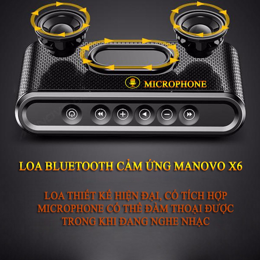 Loa bluetooth manovo x6 nút bấm cảm ứng, siêu bass vỏ nhôm nguyên khối công suất 6W thời gian sử dụng 8HLƯU Ý:SHOP CÓ 2 MODEL LÀ :MANOVO X6 VÀ MANOVO M5 QUÝ KHÁCH LƯU Ý CHỌN PHÂN LOẠI THÍCH HỢP.VỀ CƠ BẢN CHỨC NĂNG 2 SP GẦN TƯƠNG TỰ NHAU KHÁC NHAU VỀ HÌNH THỨC THÔI Ạ.